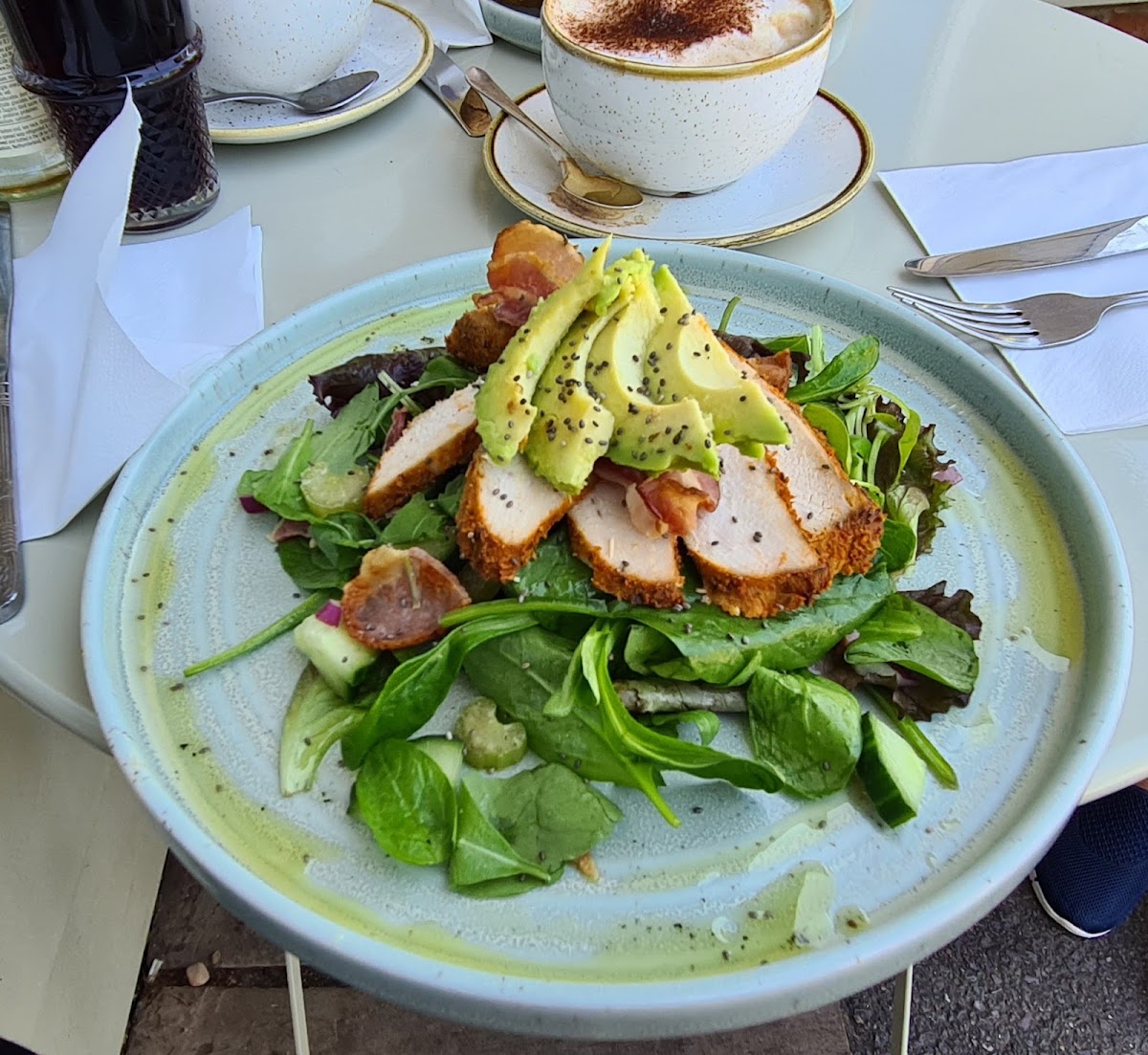 One of the highlights of the menu is the Mesquite Chicken Sandwich, offering a smoky flavor that pairs beautifully with fresh vegetables and hearty bread. Another popular dish is the Grilled Mesquite Chicken Bacon and Avocado Salad, combining the richness of bacon and creamy avocado with the tender, smoky chicken for a satisfying meal. If you’re in the mood for something lighter, the Pork and Apple Sandwich delivers a great balance of savory and sweet flavors, perfect for a midday pick-me-up.